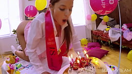 Fiesta de cumpleaños anal - Mamada con crema batida - Pastel de cumpleaños aplastado - Novio cornudo y esposo // PELÍCULA COMPLETA 17 seg