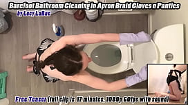 Barefoot Bathroom Cleaning in Apron Braid Gloves n Panties 10 sec